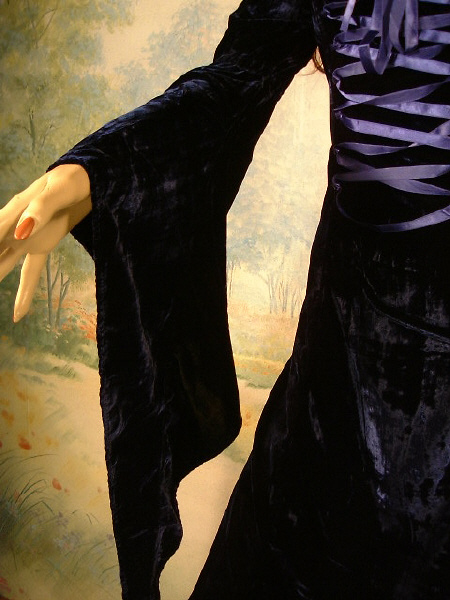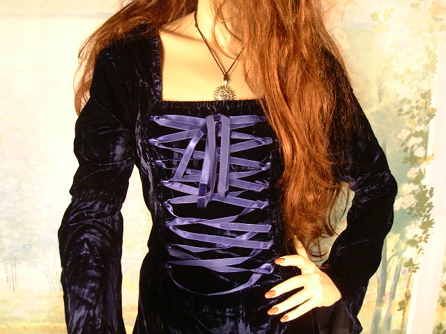 Mondelfenkleid "Moonshadow" Langes Kleid aus mitternachtsblauem schwerem Samt. Je nach Lichteinfall schimmert der Samt geheimnisvoll von blau bis schwarz - ein interessantes Farbzusammenspiel.