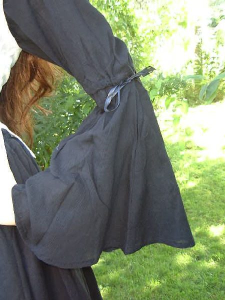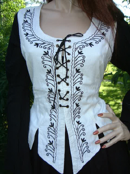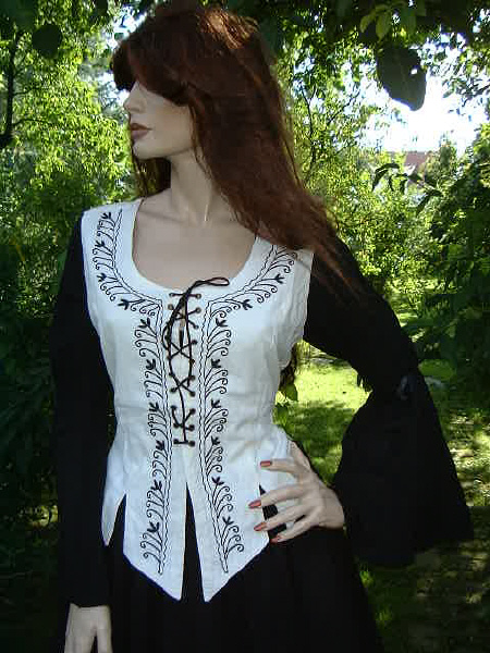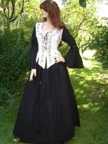 3-teiliges mittelalterliches Kleid, bestehend aus einer zarten Bluse, einem Mieder und einem sehr langen und weiten Rock