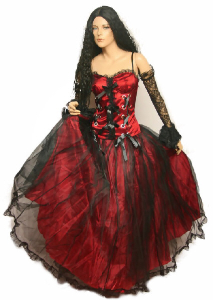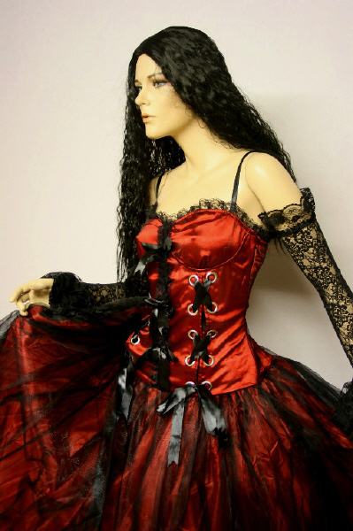 Das Rockteil ist absolut füllig, da 3-lagig (Satinrock, steifer Tüll und eine Schicht Netz) und sieht mit Unterrock - Petticoat - Reifrock ebenso gut aus wie ohne.