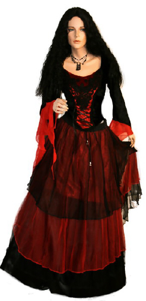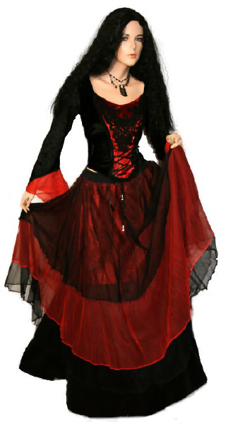 superweiter Rock "Isys" - aus hauchzartem Netz - in der Farbe schwarz und rot -