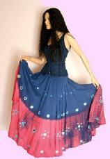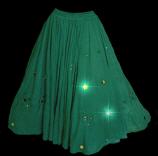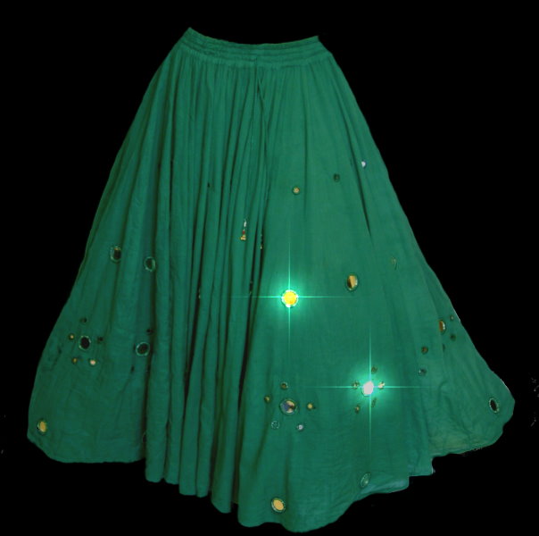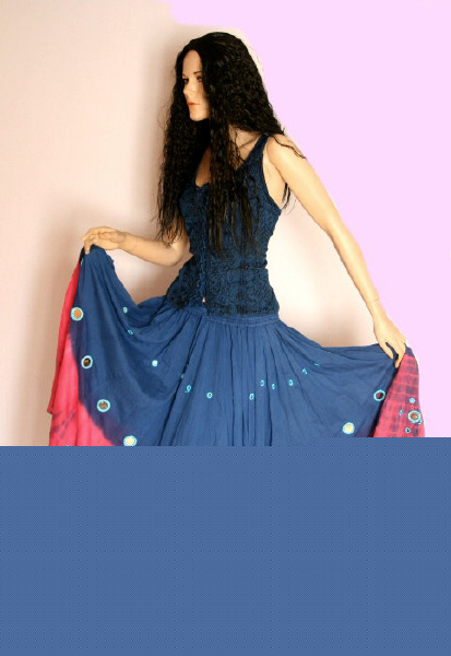 Wer einen Rock mit extrem weitem Saum sucht, kann hier fündig werden. Flying Skirts sind nahezu ein Must-Have für Tribal - und Bellydance. Aber auch bei Mittelalter und Larp macht Ihr mit diesen aufwändig gestalteten Röcken eine gute Figur und Aufmerksamheit ist Euch sicher. Der Bund ist durch den eingearbeiteten weichen und dehnbaren Gummi absolut bequem und kann sowohl in der Taille als auch auf der Hüfte getragen werden.