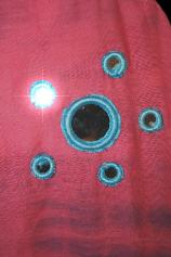 Ich habe so etwa 36 Bahnen gezählt, wenn ich von der Verzierung durch große Spiegel ausgehe. Diese sind in jede einzelne Bahn eingenäht, aber bitte seht von Maschinenwäsche ab, damit sie sich nicht ablösen.