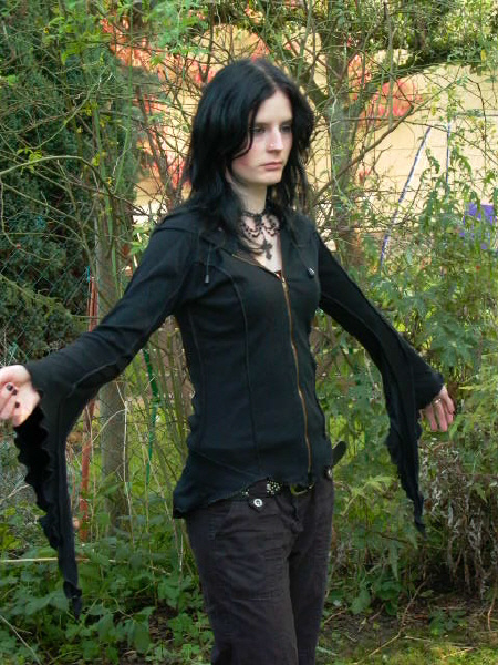 Hexige Jacke aus reiner Baumwolle mit langem, durchgehenden Zipper und irrer langer Kapuze.Süß: die Fledermaus-Ärmelbündchen