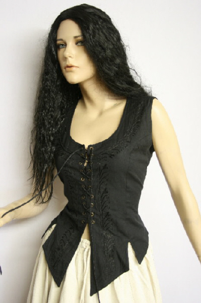 Schnürmieder aus leichtem Stoff, mit schöner Stickerei versehenideal für die wärmere Jahreszeit