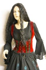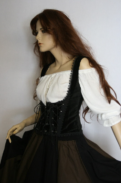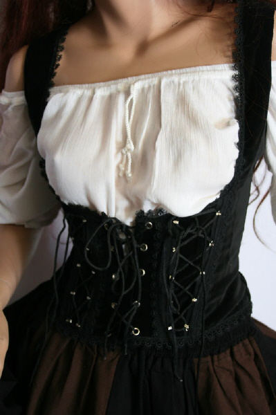 Mittelalterliches (Unterbrust) Träger-Samt-Mieder mit 3-fach-Schnürung
