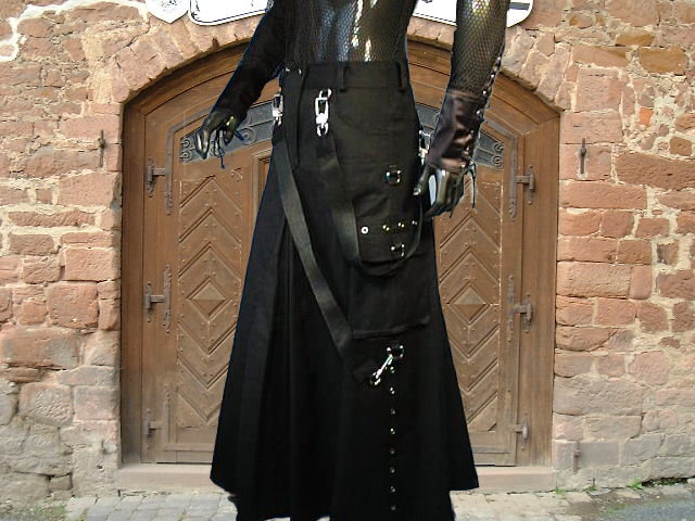Bo n d a g e r o c k" Devil´s Dust " Material: tiefschwarzer Jeansstoff mit einem geringen Anteil von Elastan für einen besonders guten Sitz.Viele Extras: Lochnieten, Karabinerhaken etc, die Kellerfalte sorgt für geniale WeiteMaterial: 98 % Baumwolle, 2% Elasthan