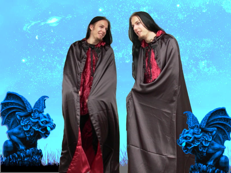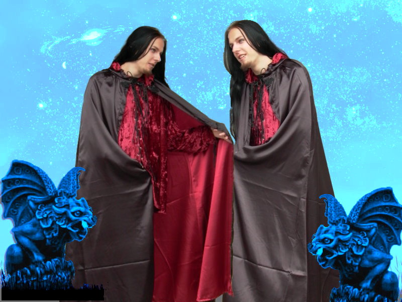 Dieser Umhang macht es möglich. Man(n) kann ihn wenden und somit in zwei unterschiedlichen Variationen (rot oder schwarz) tragen.Die Gesamtlänge ist der jeweiligen Konfektionsgröße angepasst und geht von 145 bis zu 155 cm.