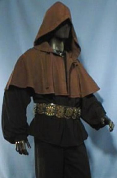 Aus dicker brauner Baumwolle in Leinenoptik. Rustikal und gut verarbeitet genügt dieses Teil auch Larp-Ansprüchen.