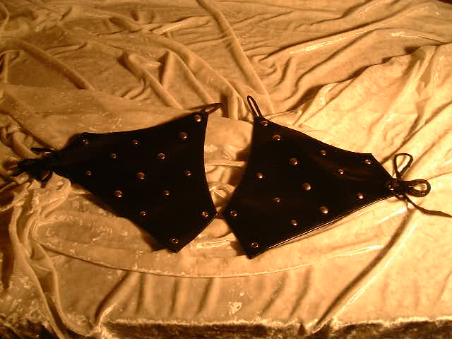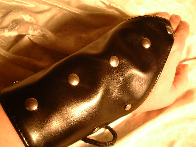 Kurze Arm-Handgelenkstulpen in Lederoptikmit Nieten und Fingerschlaufe in Gr. freesize