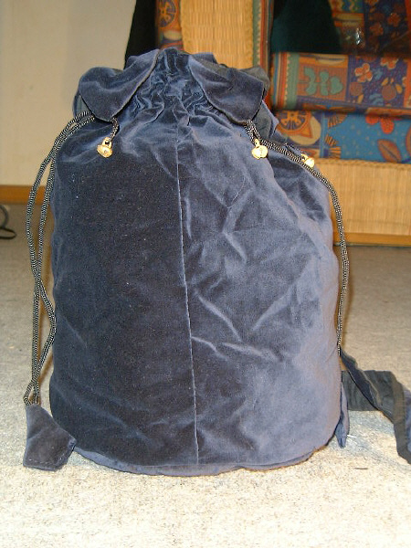 Der Beutel ist sehr geräumig, er kann in der Hand getragen werden oder ..............