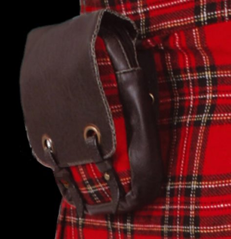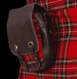 Perfekt zum Tartan-Kilt: Tasche aus Leder mit rot-kariertem Stoff. Passt zu jedem Gürtel.