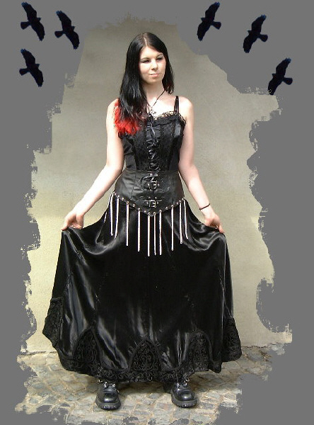 der Hüftgürtel. Schön breit mit vorderer Schnürung und mit Schnallen.Die langen Ketten entwickeln sich als wahre Eye-Catcher Reissverschluss im Rücken für komfortables An- bzw. Auskleiden