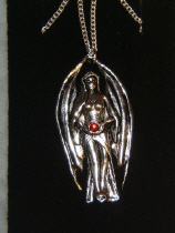 Maße: 4,5 x 2,5 cmDetailreicher Anhänger inclusive einer passenden Kette.Die Figur wurde aus nickel- und bleifreiem Zinn gefertigt und mit einem Swarovski-Kristall verziert.