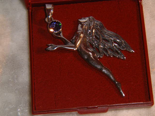Es handelt sich hier um eine sehr schöne Elfen-Figur, gut ausgearbeitet, laut Herstellerangabe aus 925 Sterling-Silber. Größe: 6,7 x 4 Sie trägt in ihrer Hand einen großen violetten Swarovski Stein. Die "Elfenkönigstochter" steht für Liebe, Anziehungskraft und Leidenschaft. Wir liefern sie in einem Schmucketui, mit der jeweiligen Bedeutung und der Beschreibung ihres Ursprungs. Es ist also auch ein Artikel, der sich zum Verschenken eignet.