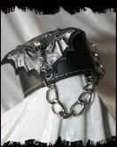 Bracelet "Bat" Armband / Bracelet "Bat" aus rabenschwarzem Glattleder silberfarbig geschwärzte Fledermaus mit Kette, stylish und abgefahren 8,90 EUR