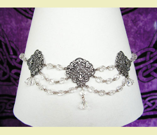 Die Tiara wird hinten mittels einer verstellbaren Kette geschlossen
