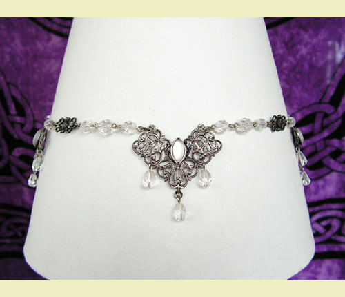 Die Tiara wird hinten mittels einer verstellbaren Kette geschlossen und passt dadurch auf jeden Kopf.