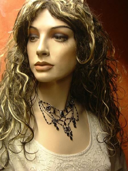 Detailverliebtes Halsband mit Verlängerungskette und Karabinerverschluss in den Farben tiefschwarz - antiksilber