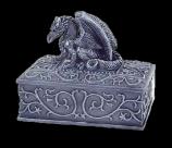 Rechteckige Dose, kunstvoll verziert, zur Aufbewahrung kleiner Kostbarkeiten ebenso ideal wie zum Beherbergen von Kippen, Tabak und Co. Maße: etwa 14 cm x 11 cm Material: Kunststein, Polyresin